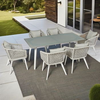 7 pcs 정원 다이닝 파티오 테이블 세트 직사각형 안뜰 외부 알루미늄 로프 의자 카페 비스트로 테이블과 의자 세트